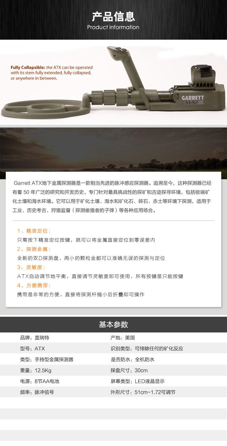 美國進(jìn)口地下金屬探測器蓋瑞特ATX手持防水脈沖探測器自動(dòng)地平衡