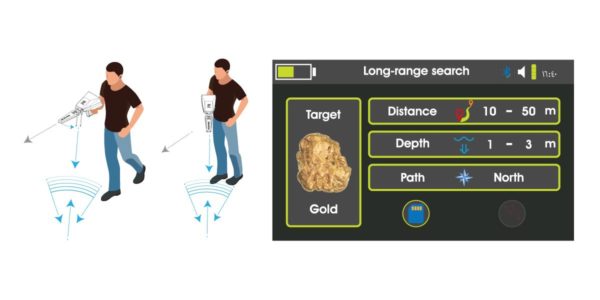 這是世界上不多次使用遠程金屬探測器,該設備具有針對目標的自動(dòng)檢測系統,并會(huì )在屏幕上自動(dòng)顯示目標的名稱(chēng),它還可以確定目標與設備支點(diǎn)之間的距離,還使用戶(hù)能夠確定目標的位置和深度,結果將自動(dòng)出現在屏幕上。