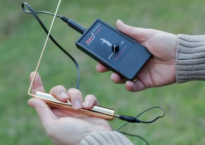 使用者必須以放松姿勢站立,兩腳稍微分開(kāi),雙臂緊貼身體但不要太緊。握住接收桿時(shí),手掌和手腕不宜太用力,使其在手中自動(dòng)達到平衡狀態(tài),并始終相互平行。手握桿時(shí),使其與地面平行,以增加其敏感性,或稍微向下傾斜,以達到更好的平衡狀態(tài)(若你是的分子頻率探測的新手)。